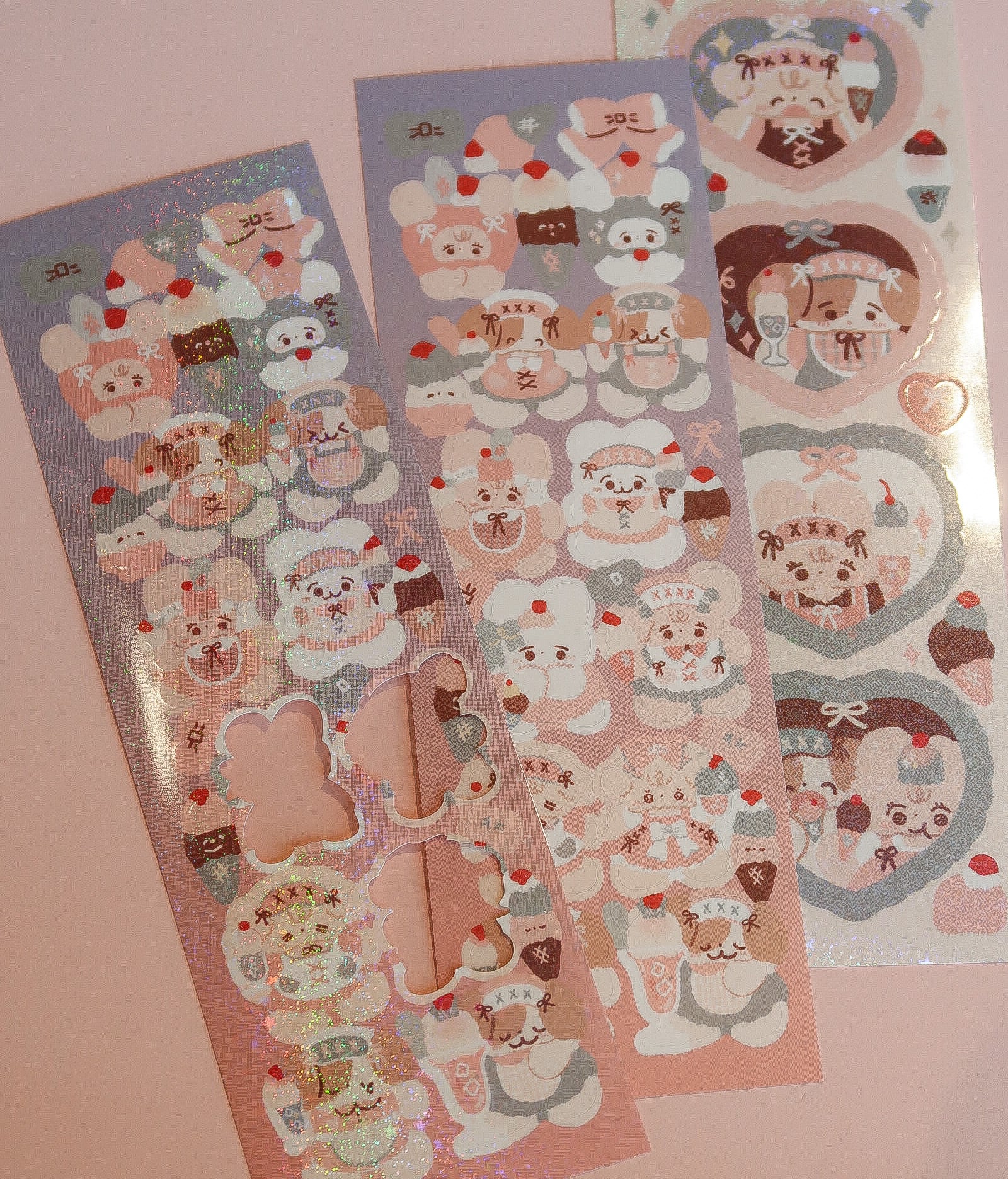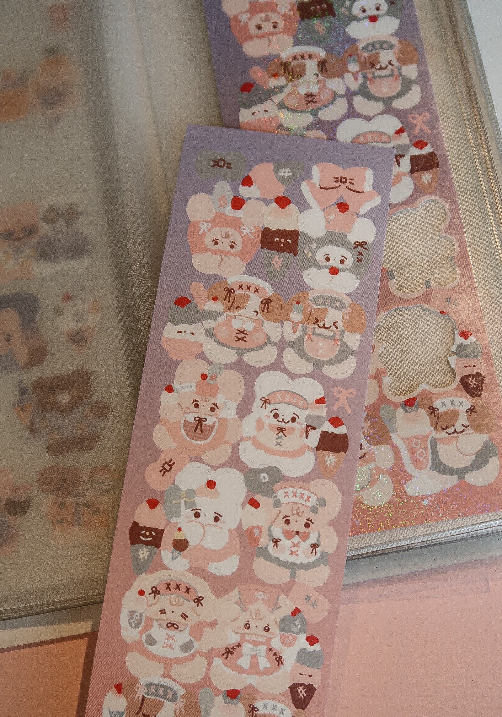新作☆TO45 TONGZI STUDIO 桐子【冰淇淋与蕾丝裙 2】ラメ / マット 塗工紙 シートシール 1枚 | cherish365_zakka
