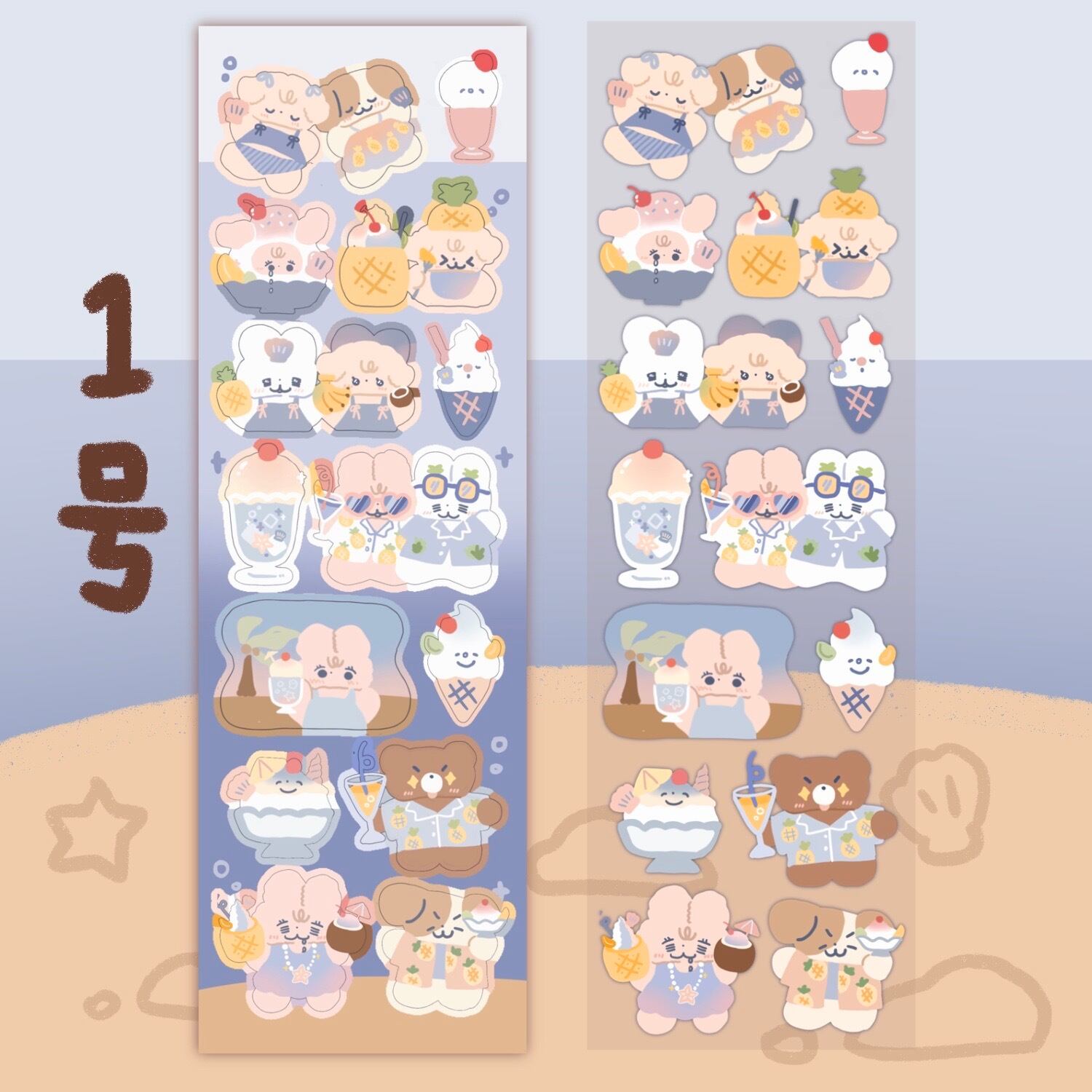 新作☆TO52 TONGZI STUDIO 桐子【去海边 1】ラメ / マット 塗工紙 シートシール 1枚 | cherish365_zakka