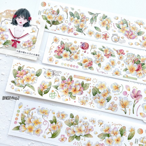 再販☆YM6 奕夢屋 Yi meng wu【鸡蛋花】マスキングテープ / 光沢 PETテープ 5cmx10m | cherish365_zakka