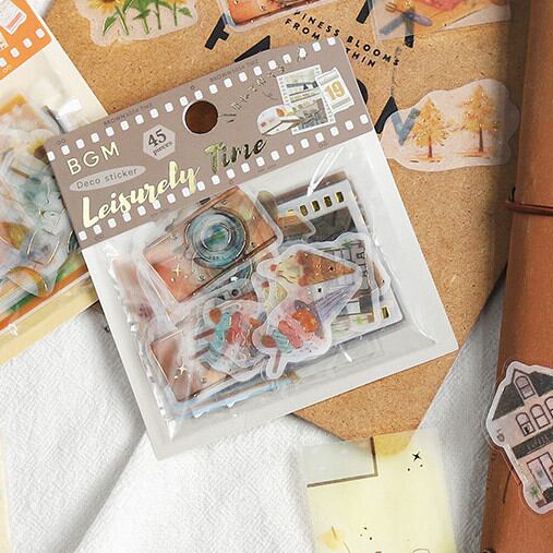 新作☆ 2023.3月 BGM のんびり時間”箔押し 「茶」トレーシングペーパーシール