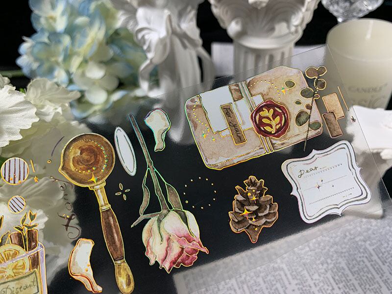 再販☆SND371 新七天【香味回忆】オーロラ金加工 PETテープ 6cmX5m 白インク 特殊インク | cherish365_zakka