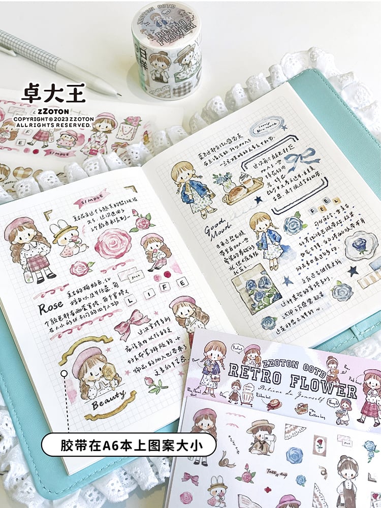 MO352 Molinta【Retro Flower 阿卓今日穿搭复古花朵】マスキングテープ 特殊インク 剝離紙