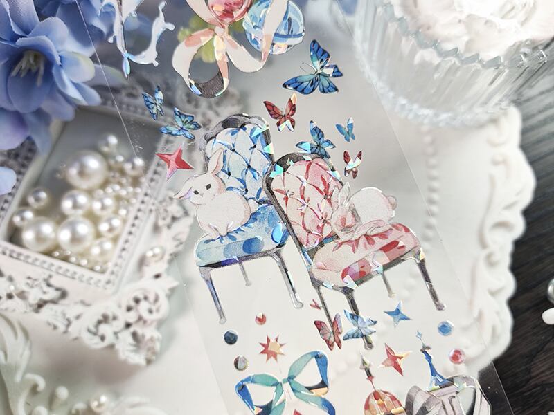 SND384 新七天【双子】貝殻光加工 PETテープ 5.5cmX5m 白インク 特殊インク | cherish365_zakka