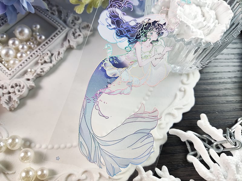 SND392B 新七天【潮汐童话】オーロラ銀加工 PETテープ 6cmX5m 白インク 特殊インク | cherish365_zakka