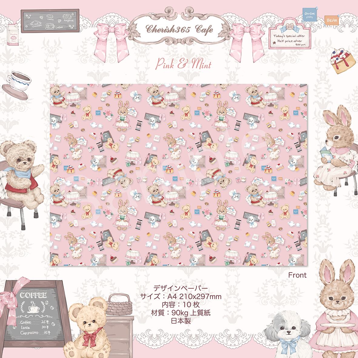 予約☆CHO88A Cherish365【Cherish365CAFÉ - Pink & Mint】デザインペーパー / ラッピングペーパー 10枚 | cherish365_zakka