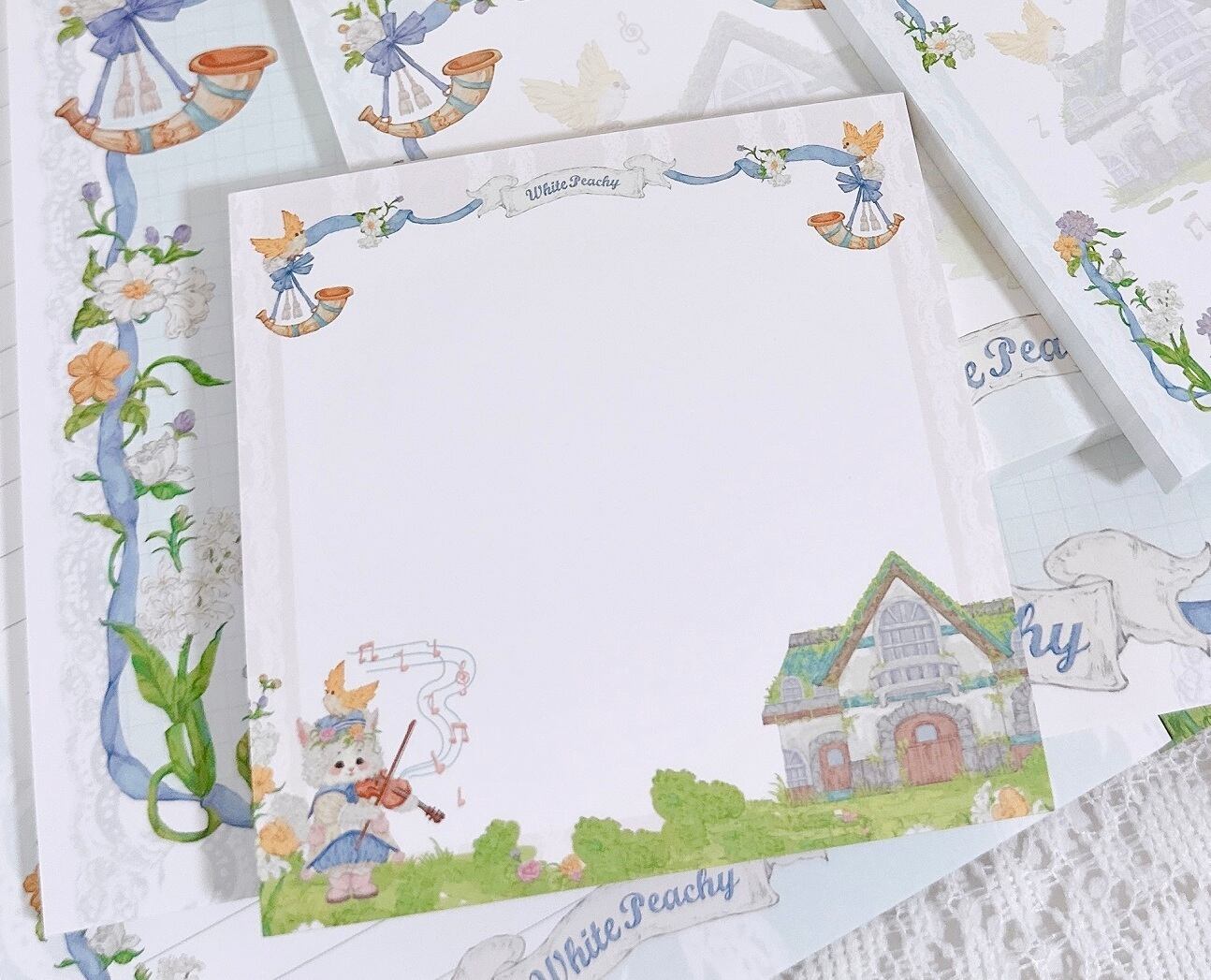 WP54 White Peachy【春日交响曲B】正方形メモ帳 | cherish365_zakka