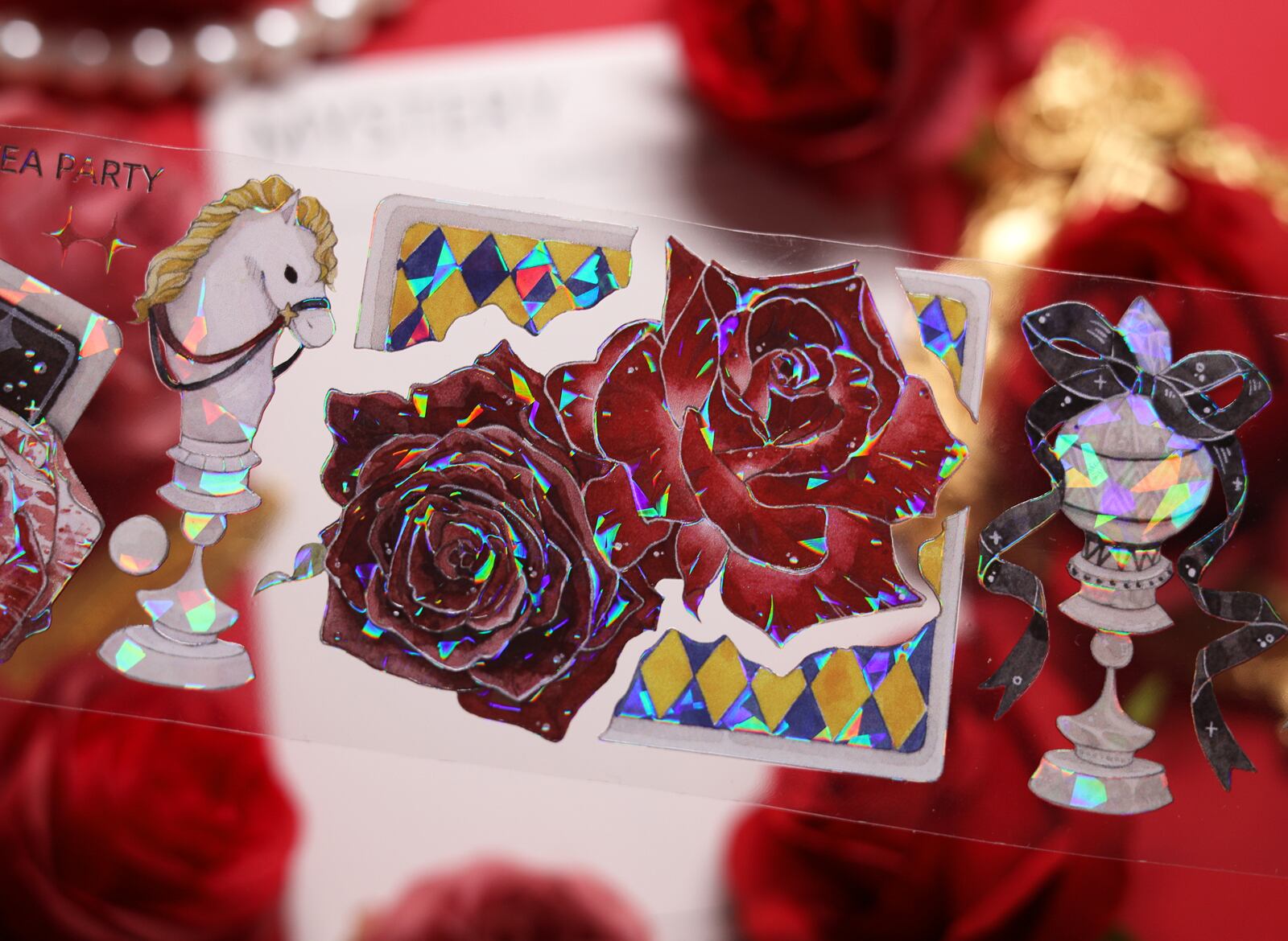 AL166B アリス茶会【纸牌游戏】貝殻光加工 PETテープ 白インク 光沢PET 剥離紙付 | cherish365_zakka