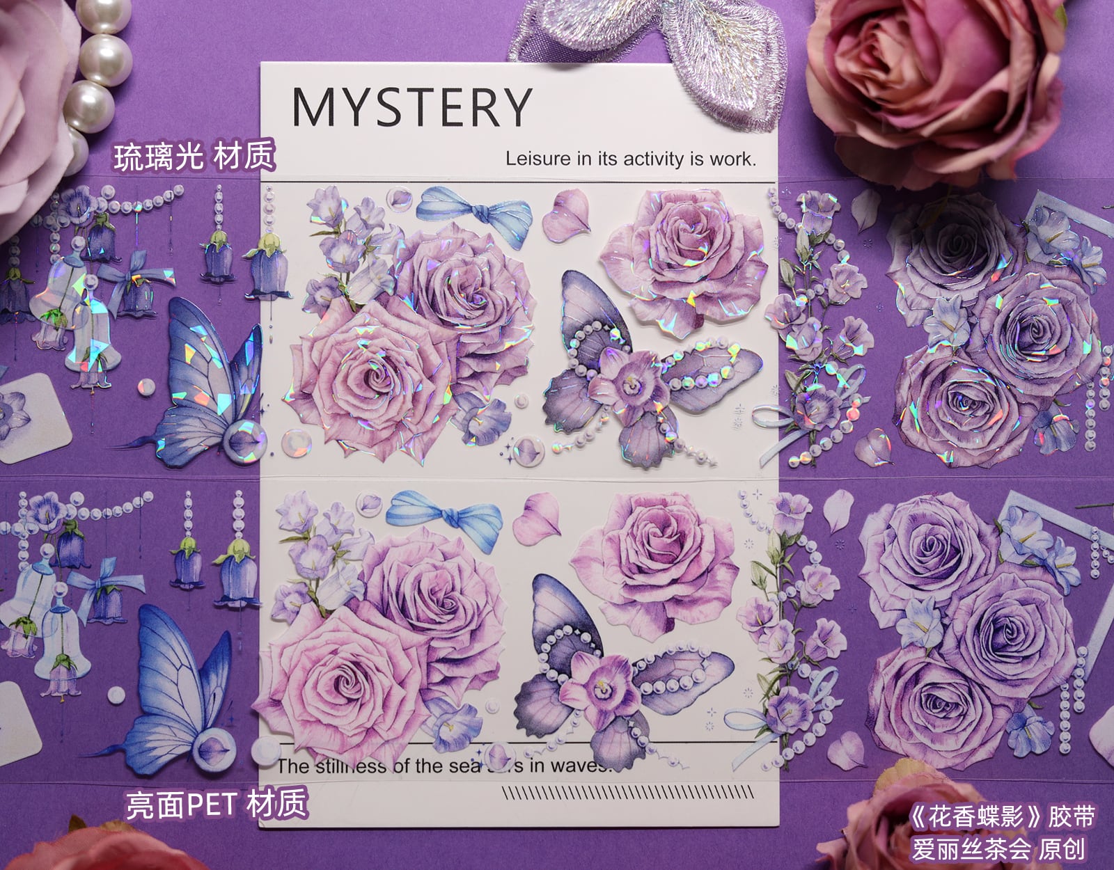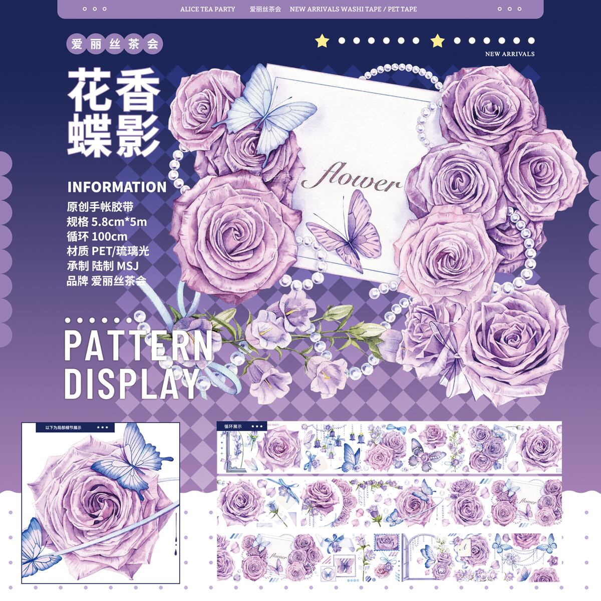 再販☆AL168A アリス茶会【花香蝶影】PETテープ 白インク 光沢PET 剥離紙付