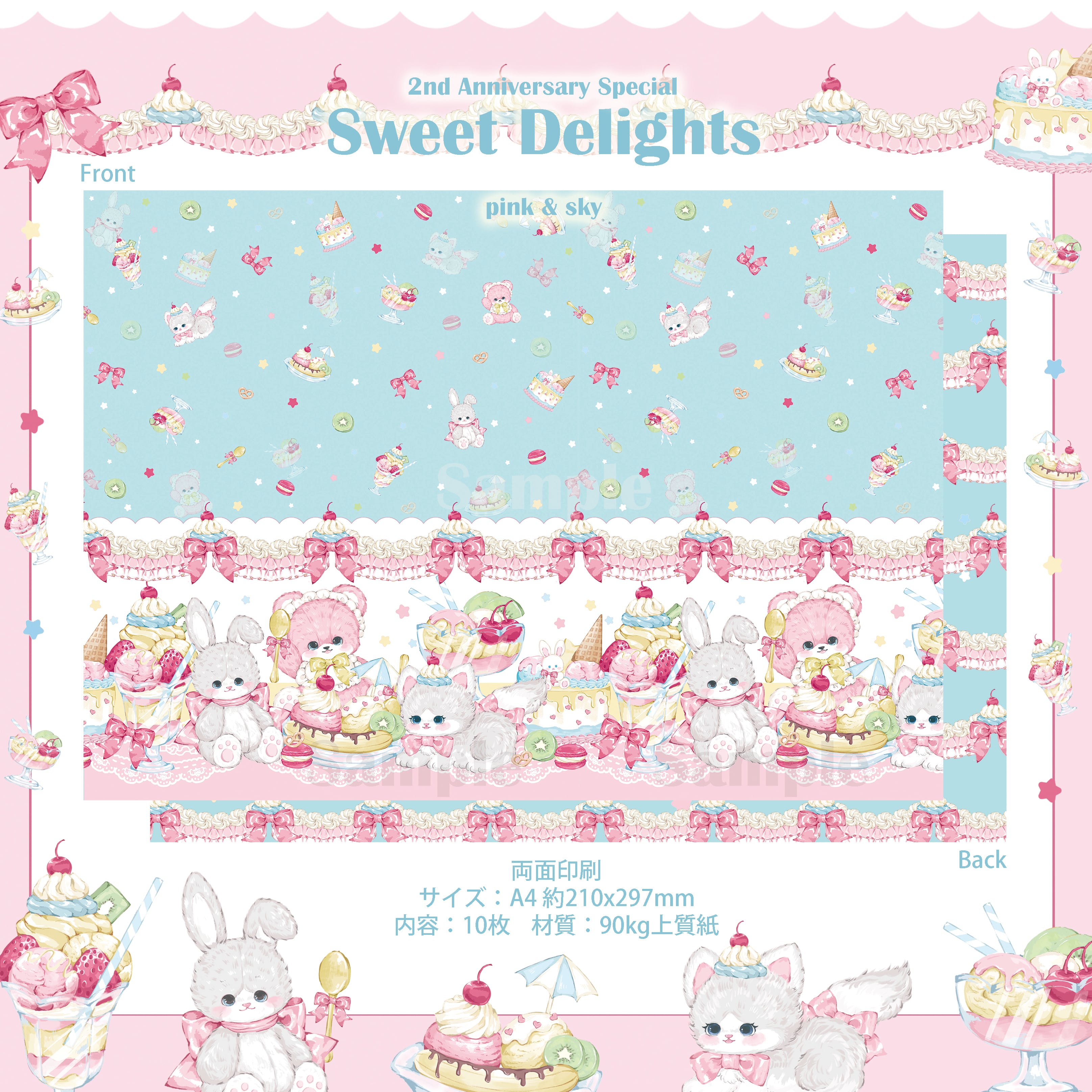 予約☆CHO100 Cherish365【Sweet Delights pink & sky】デザインペーパー / ラッピングペーパー 10枚 | cherish365_zakka