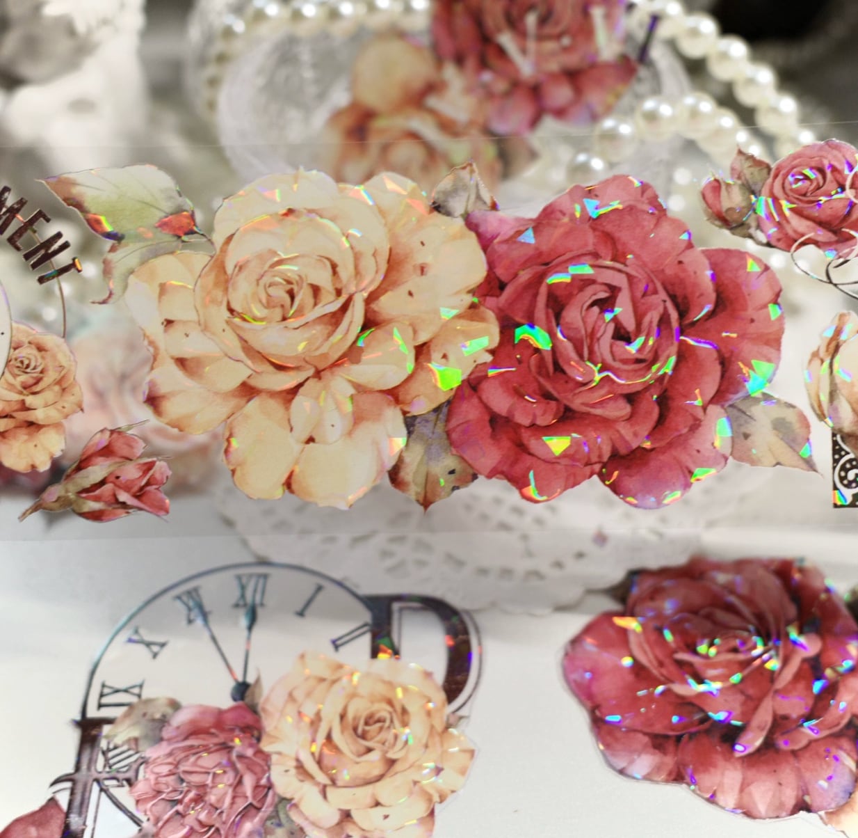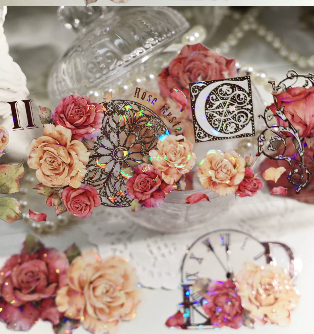新作☆EM14B 壹洱原創【复古玫瑰】花 貝殻光加工 PETテープ 60mm×6m | cherish365_zakka