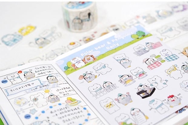 (切り売り)MO165B Molinta モリンタ Polar bear & Penguin's Daily【白熊企鵝的日常】マスキングテープ 特殊インク 剝離紙 | cherish365_zakka