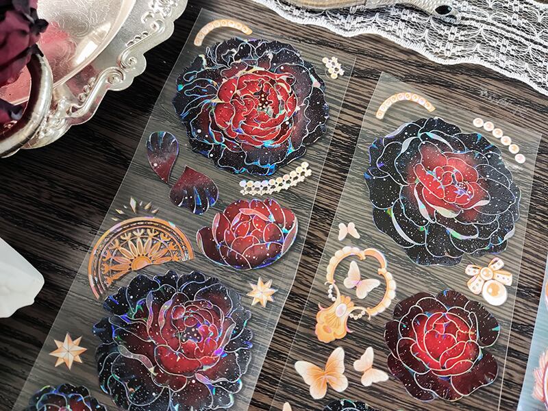 (切り売り)SND382B 新七天【夜芍药】貝殻光加工 PETテープ 6cmX1m 白インク 特殊インク | cherish365_zakka