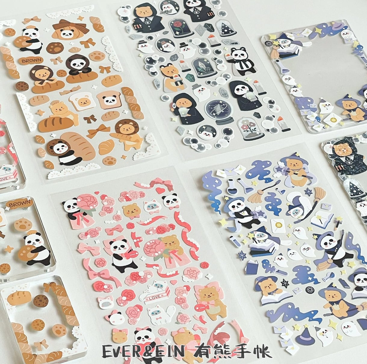 EE116 EverEin【有熊色系 - pink black purple brown】シートステッカー マット/ラメ 全4種セット | cherish365_zakka