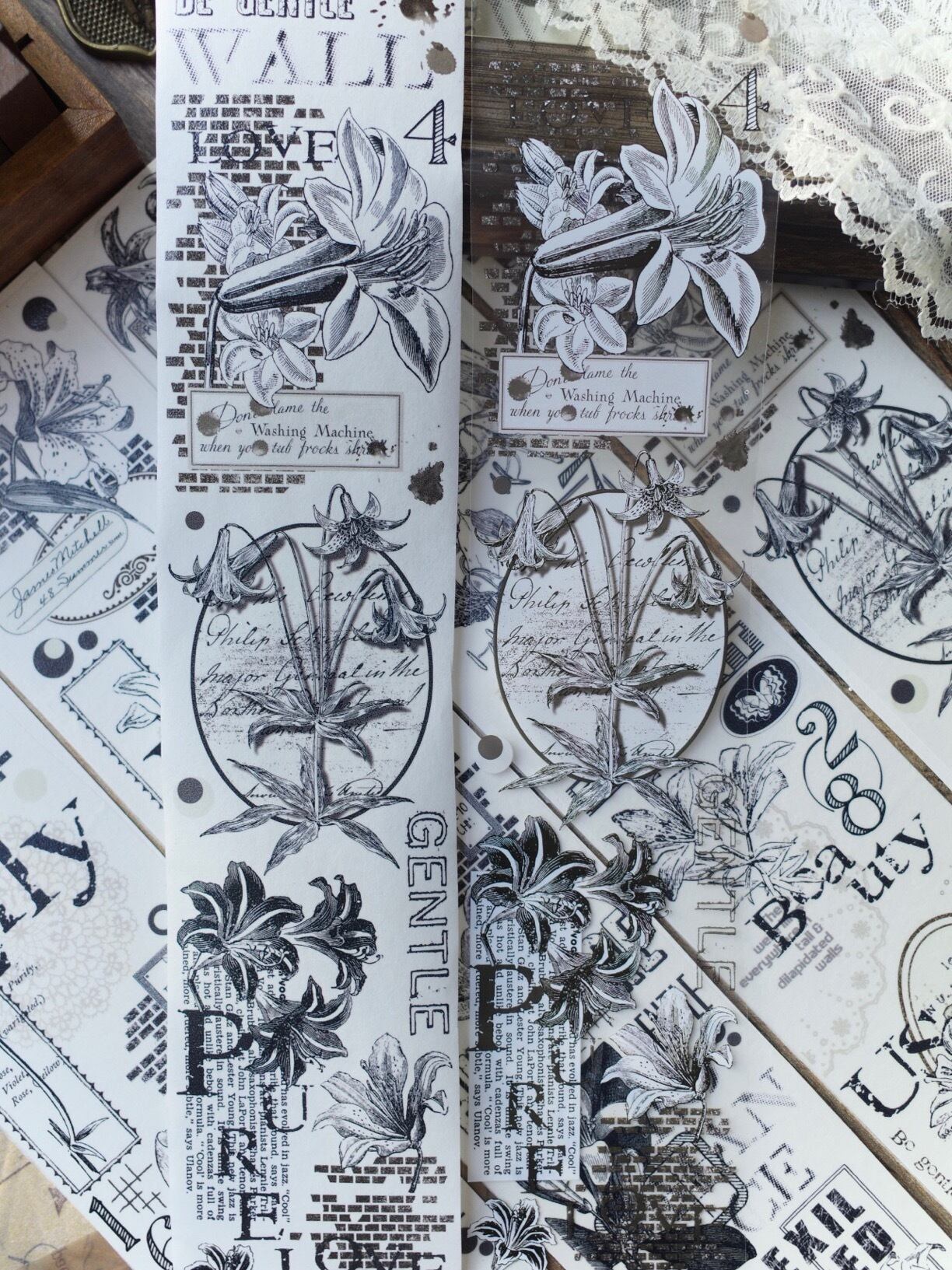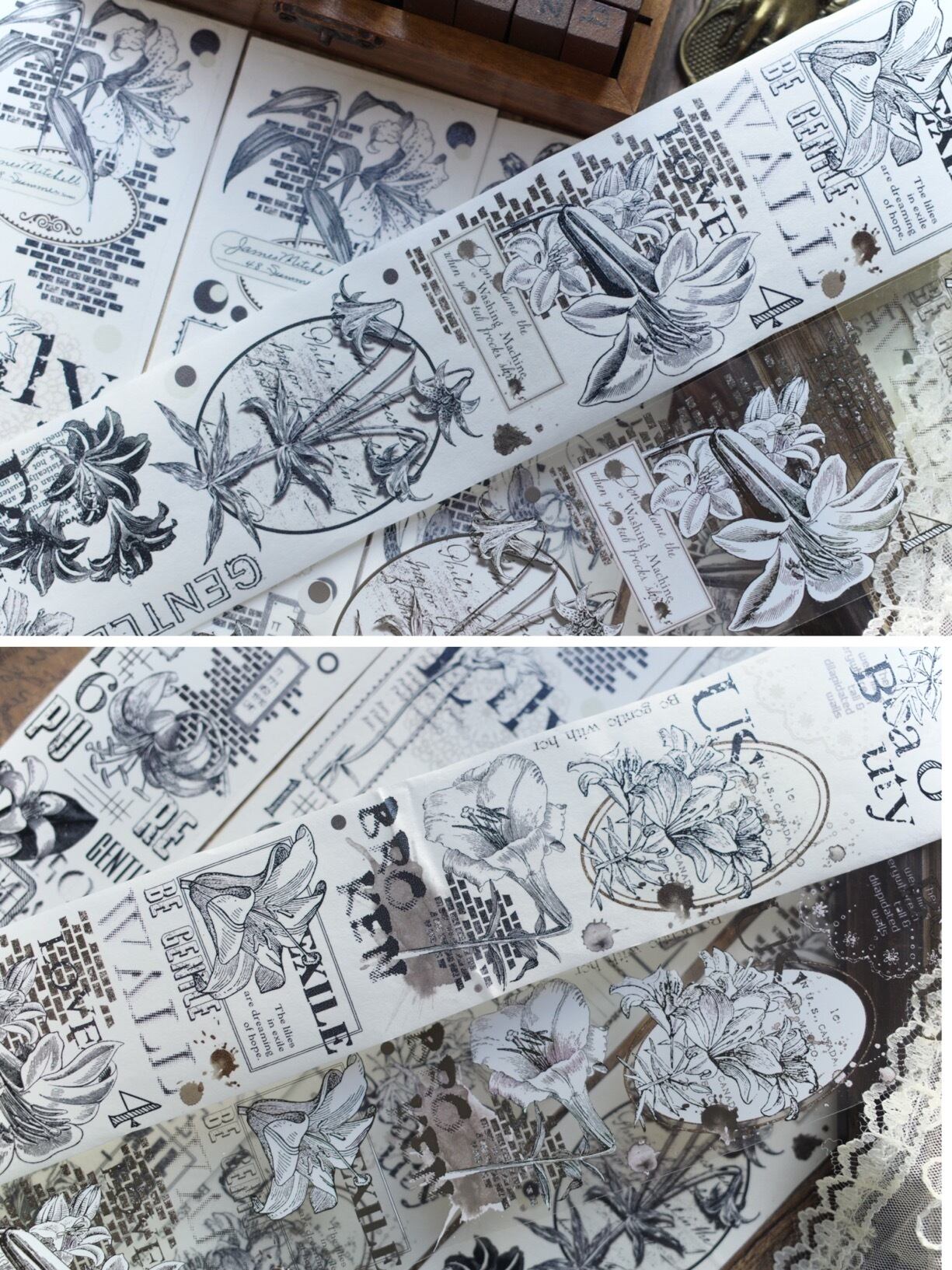 新作☆EM22 壹洱原創 yier【旧影百合】花 マスキングテープ / PETテープ 60mm×5m | cherish365_zakka