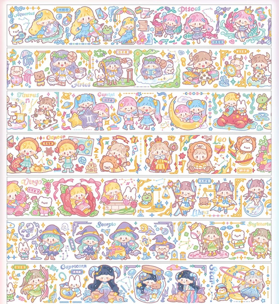 (切り売り)MO413C Molinta【Constellation's story 小小阿卓星座物语】Loop:200cm 一部オーロラ加工 PETテープ 白インク 剝離紙 | cherish365_zakka
