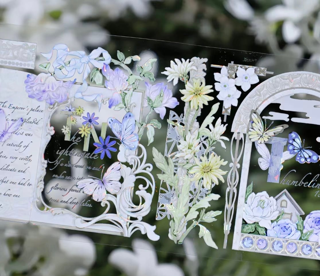 新作☆SH14 Shine手帳工作室【淡彩氤氲】6.5cmx10m 貝殻光加工 白インク 剥離紙 PETテープ