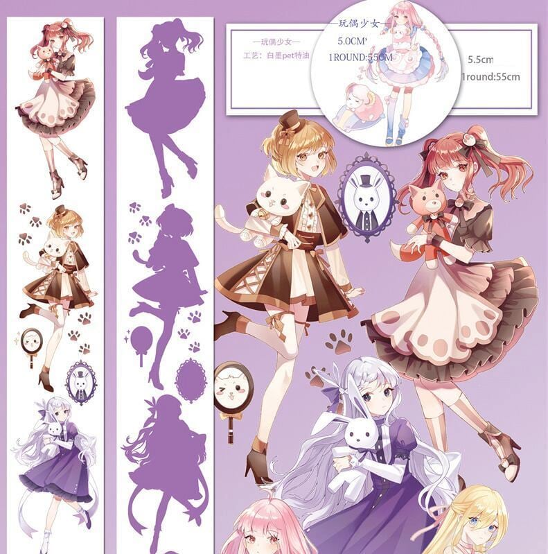 (切り売り)BO65D BOBOGD 玩偶少女 (5cmx1m) 光沢PETテープ 白墨 剥離紙付