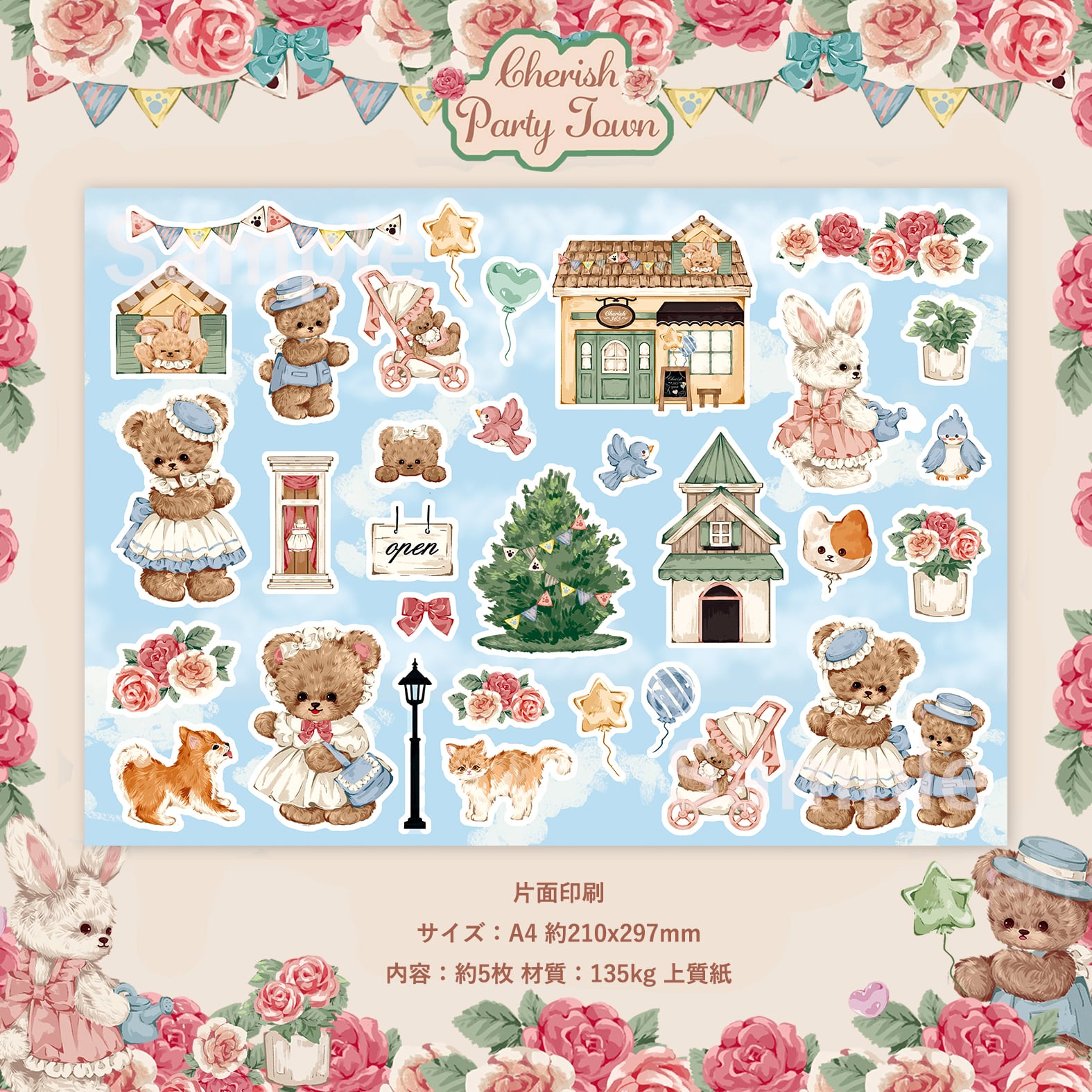 予約☆CHO179 Cherish365【Cherish Party Town】コラージュペーパー / コラージュシート 5枚 | cherish365_zakka