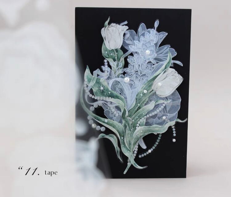 MOT482 moodtape【tale flower羊脂玉花】PETテープ 特殊インク 剥離紙 | cherish365_zakka
