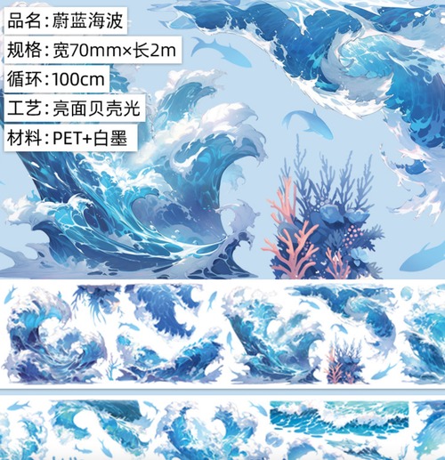 新作☆FT208 Five Treasure 五宝文創【蔚蓝海波】貝殻光加工 PETテープ 剥離紙付 70mmx2m | cherish365_zakka