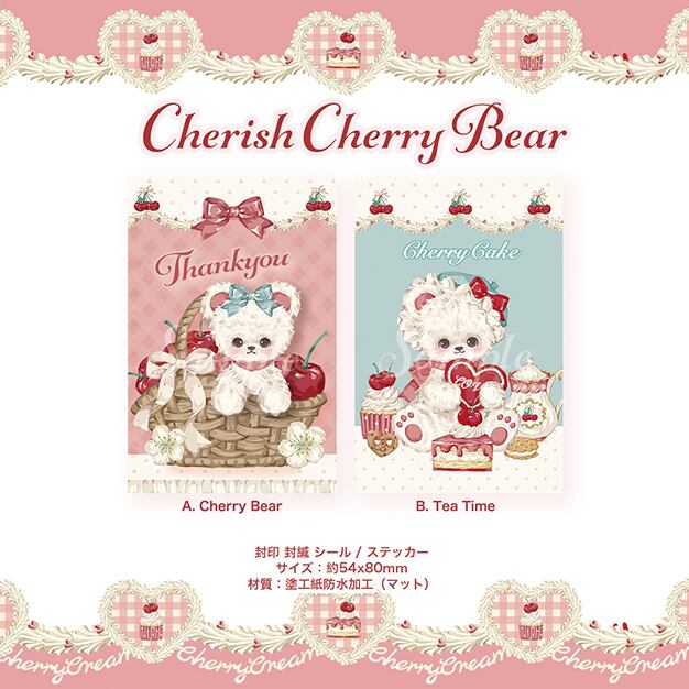 予約☆CHO210 Cherish365【Cherish Cherry Bear】封印 封緘 シール / ステッカー 2種