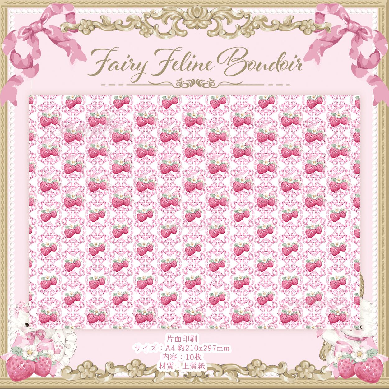 予約☆CHO286 Cherish365【Strawberry - Fairy Feline Boudoir】デザインペーパー / ラッピングペーパー 10枚
