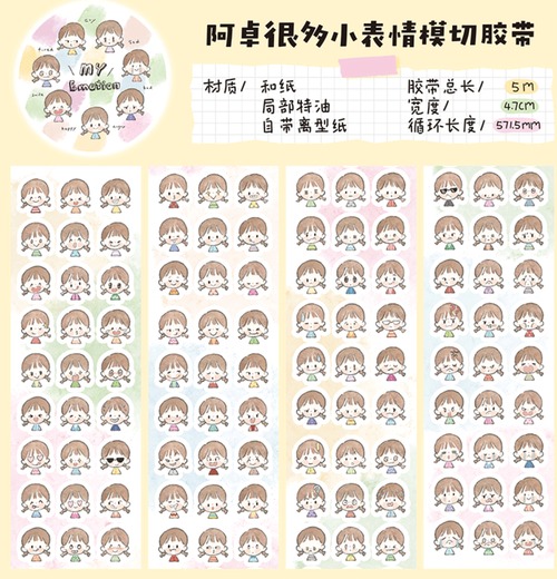 MO484 Molinta【my emotion - 阿卓很多小表情】型抜き マスキングテープ 特殊インク 剝離紙