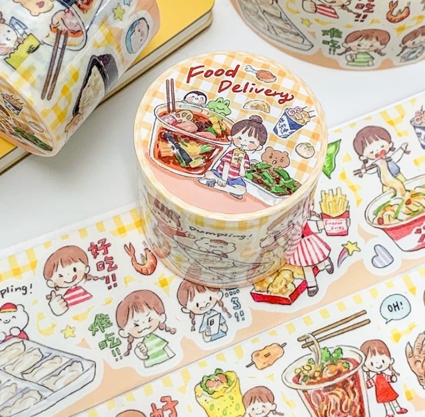 MO557|Molinta【Food Delivery - 阿卓外卖吃吃吃】4.5cmx5m 型抜き マスキングテープ 特殊インク 剝離紙 | cherish365_zakka