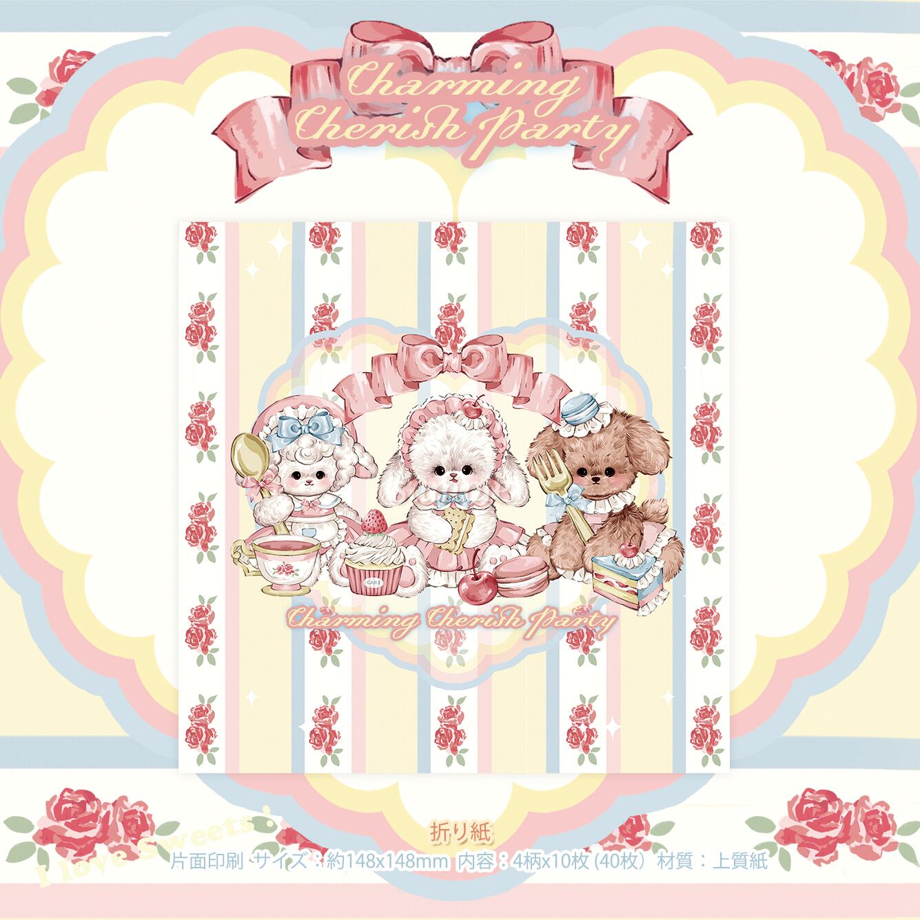 新作予約☆CHO465|Cherish365【Charming Cherish Party】片面 折り紙 40枚 | cherish365_zakka